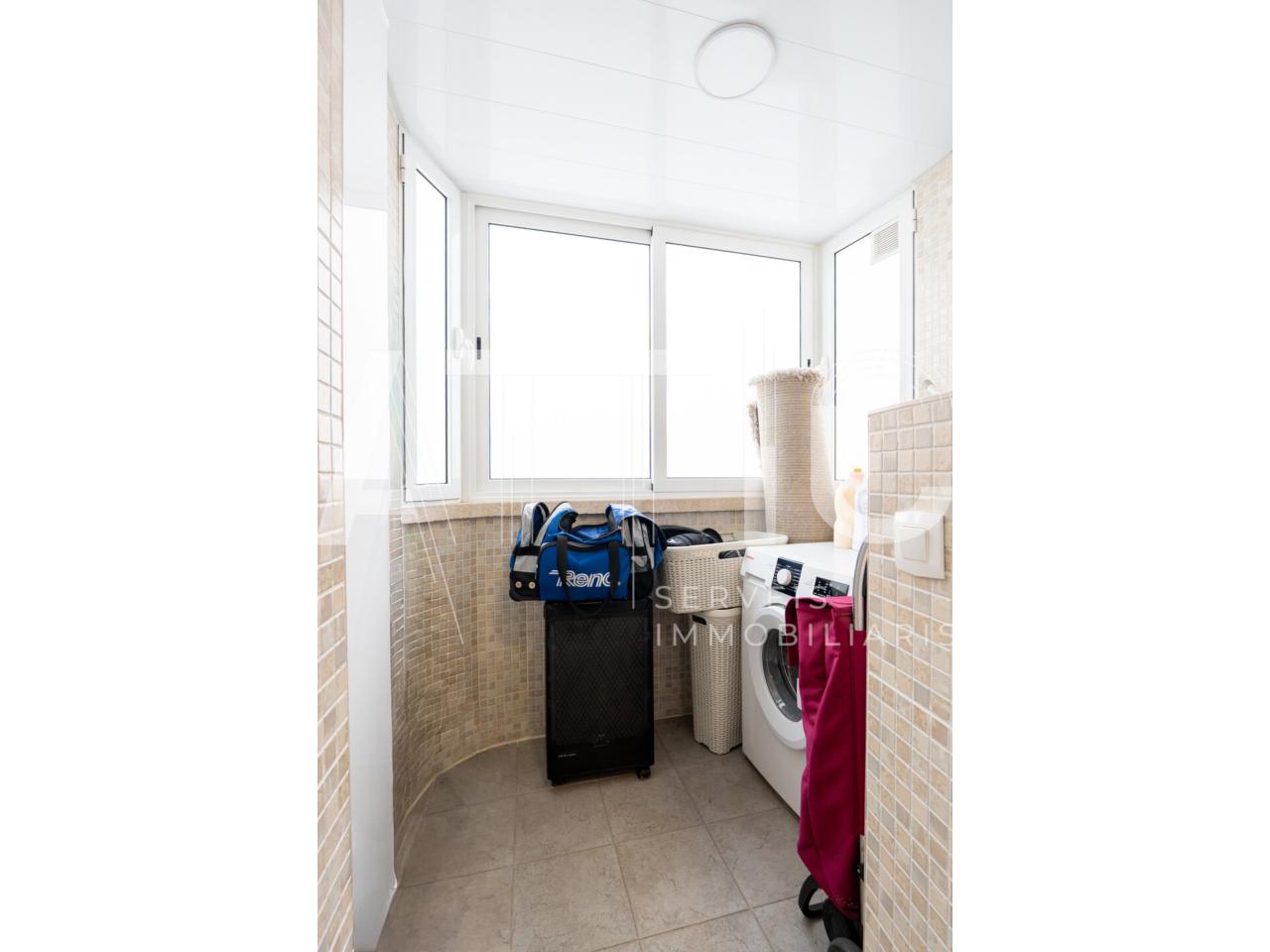 La vivienda dispone de tres dormitorios, dos baños completos y una cocina de 13 m² que sorprende por su tamaño, algo especialmente valorado por familias o por quienes disfrutan cocinando con espacio real. A esto se suma un lavadero independiente que aporta orden y comodidad, un pasillo con altillo perfecto para almacenaje y un recibidor con armarios empotrados de cuatro puertas, ideal como chaquetero o como solución práctica para mantener todo organizado desde la entrada. Es una vivienda que, además de bonita, es inteligente: aprovecha cada metro y te facilita la vida.